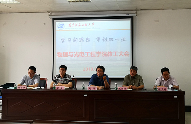 6月20日下午,物理与光电工程学院在尚贤楼402多功能报告厅召开了全院教工大会,院长刘博、党委书记王锡伟、副院长赖敏、副院长陈玉林、副院长赵德林及全院教师参加了会议。会议由王锡伟书记主持。