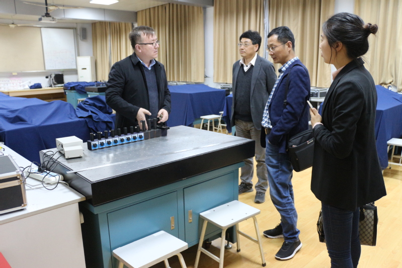 会后,光电系副主任匡文剑和裴世鑫老师陪同来访一行人参观了学院光电专业教学实验室,对光栅光谱仪、LED特性分析仪等教学仪器在指导学生实践教学过程中的利弊进行了分析和交流。