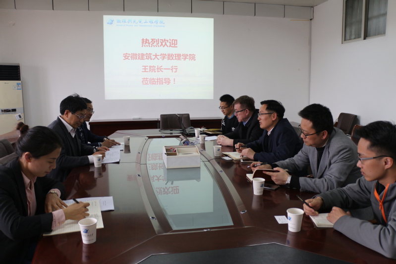 4月16日下午,安徽建筑大学数理学院副院长王焕宝一行三人来我院调研交流。学院副院长陈玉林、副院长赵德林、电工程系主任刘玉柱及教师代表参加了座谈交流。