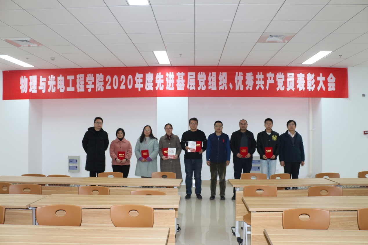 大会在庄严的《国歌》声中开幕。田智副书记宣读了《物理与光电工程学院关于表彰2020年度先进基层党组织、优秀共产党员的决定》,授予光电工程系教工党支部、物理系教工党支部2个支部“先进基层党组织”,授予陈宣、陈云云、王俊峰、杨翠红、赵静、周庚侠6位同志“教工优秀共产党员”称号,授予陈帅东,林婷2位同志“优秀学生共产党员”称号。随后获奖支部和优秀党员代表依次上台发言,分享了自己在工作、学习、生活中取得的成绩与获得的经验,充分展现了基层优秀共产党员的风采,并号召全体师生党员团结一心,为学院建设、学校发展贡献自己的力量。学院领导为受表彰的同志颁发证书并赠送《从13人到9000多万人——史上最牛创业团队》和路遥的《人生》两本富有教育意义的书籍。