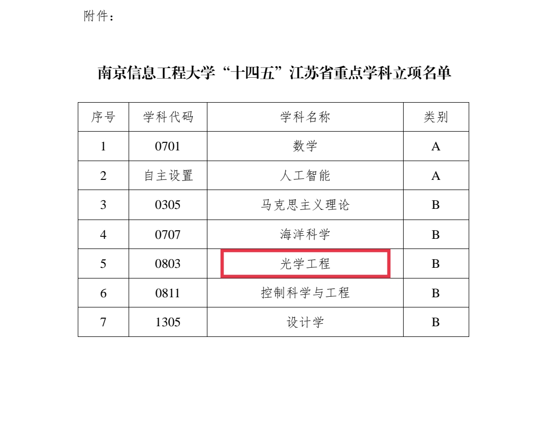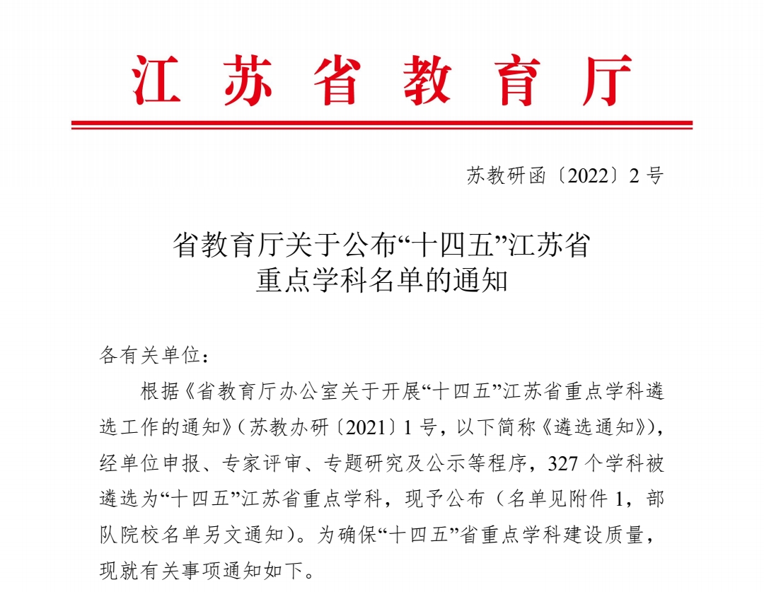 近日,江苏省教育厅下发了《省教育厅关于公布“十四五”江苏省重点学科名单的通知》,依托我院建设的“光学工程”学科成功入选。