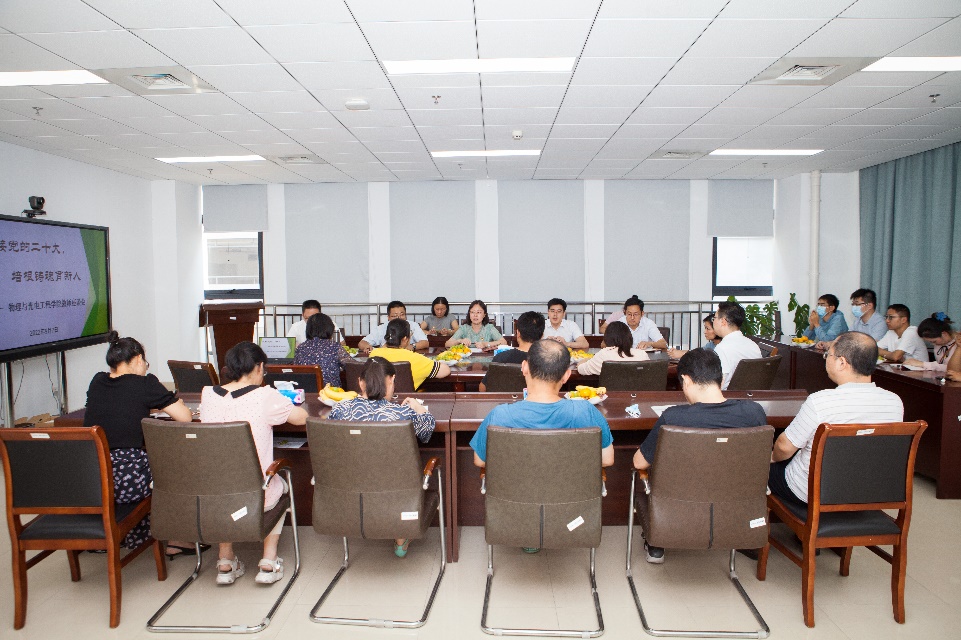 为进一步加强学院师德师风建设,共商教师成长,共谋学院发展,9月7日下午,物理与光电工程学院召开“迎接党的二十大,培根铸魂育新人”教师代表座谈会,全体院领导和教师代表参会。