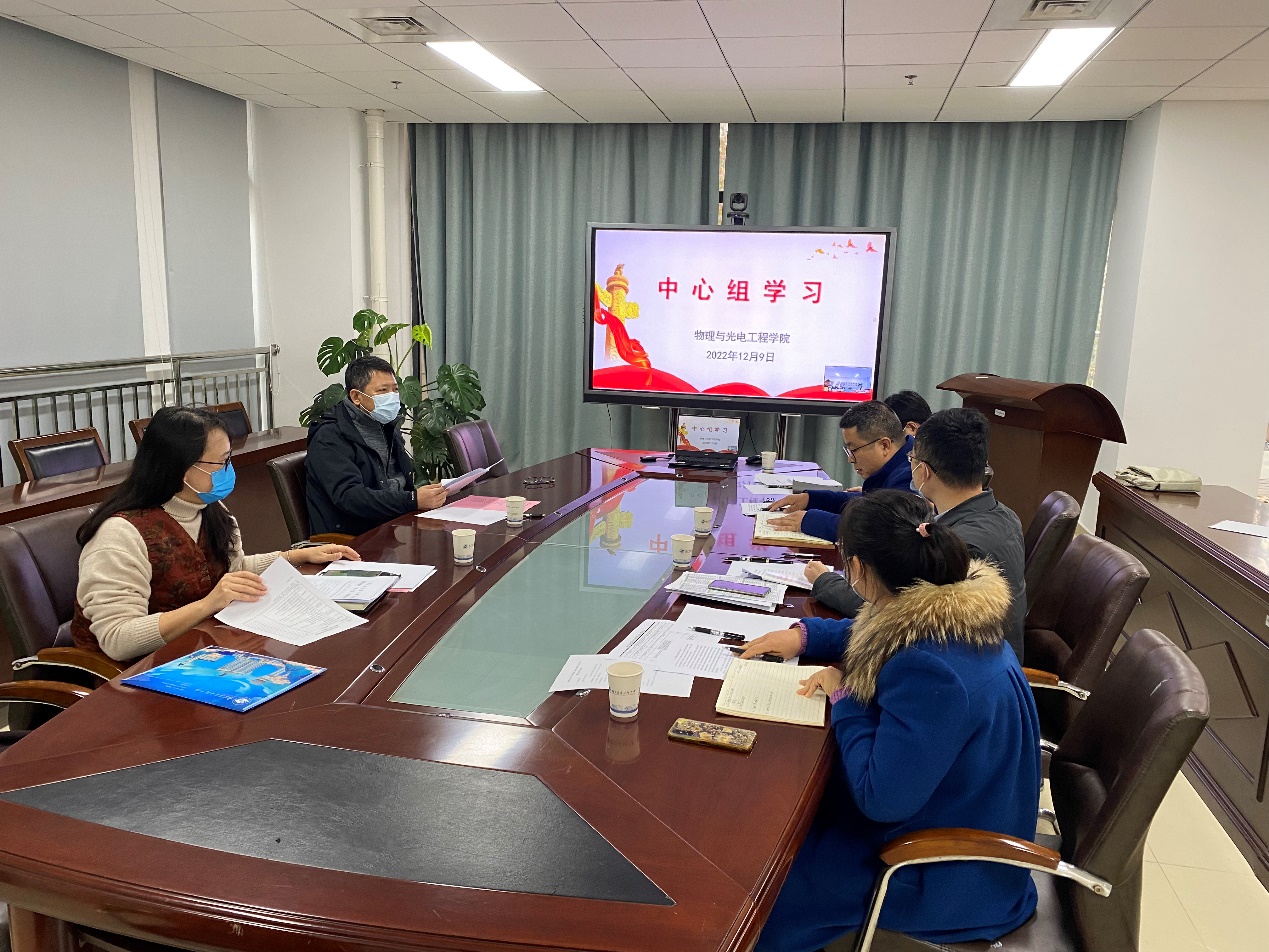 12月9日上午,物理与光电工程学院党委理论学习中心组在藕舫楼330召开集体学习会,学习主题是党的二十大报告第五部分“实施科教兴国战略,强化现代化建设人才支撑”。校党委常委、副校长金自康莅会旁听指导,学院党委副书记(主持工作)徐志勇、党委副书记田智、党委委员赵德林、陈云云出席会议,副院长赖敏、党务秘书陈美红、巡学旁听组联络员张秋红列席会议。会议由徐志勇同志主持。