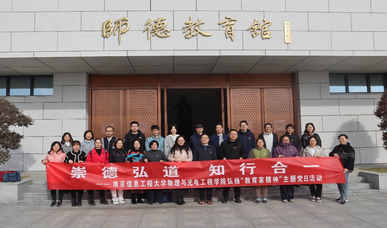 为深入学习贯彻习近平新时代中国特色社会主义思想,弘扬并践行教育家精神,从先辈教育实践中汲取立德树人的精神养分,推进学院师德师风建设,引导教师坚定理想信念、涵养高尚师德,11月23日,物理与光电工程学院党委和分工会组织开展“崇德弘道 知行合一”弘扬教育家精神主题活动,学院领导班子成员、各教工党支部党员教师、民主党派教师和学院分工会会员教师代表参加了此次活动。