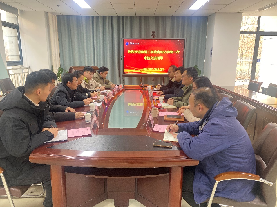 12月17日下午,淮阴工学院自动化学院党委书记孙全平等一行6人到物电院调研交流,我院党委书记徐志勇、院长涂兵、副书记兼副院长刘红梅及师生党支部书记代表出席调研活动。