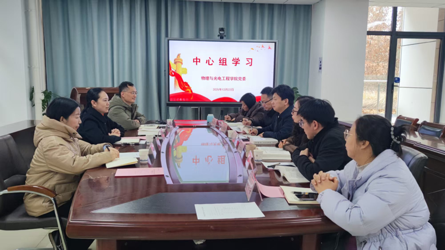 12月22日上午,物理与光电工程学院党委理论学习中心组在藕舫楼330召开集体学习会,学习主题是《习近平谈治国理政(第五卷)》中“朝着建成教育强国目标扎实迈进”有关章节内容。校党委常委、统战部部长陈涛莅会旁听指导,学院党委书记徐志勇、院长涂兵、党委副书记刘红梅、党委委员赵德林、陈云云出席会议,副院长赖敏、副院长杨翠红,列席旁听组联络员何亚群列席会议。会议由徐志勇主持。