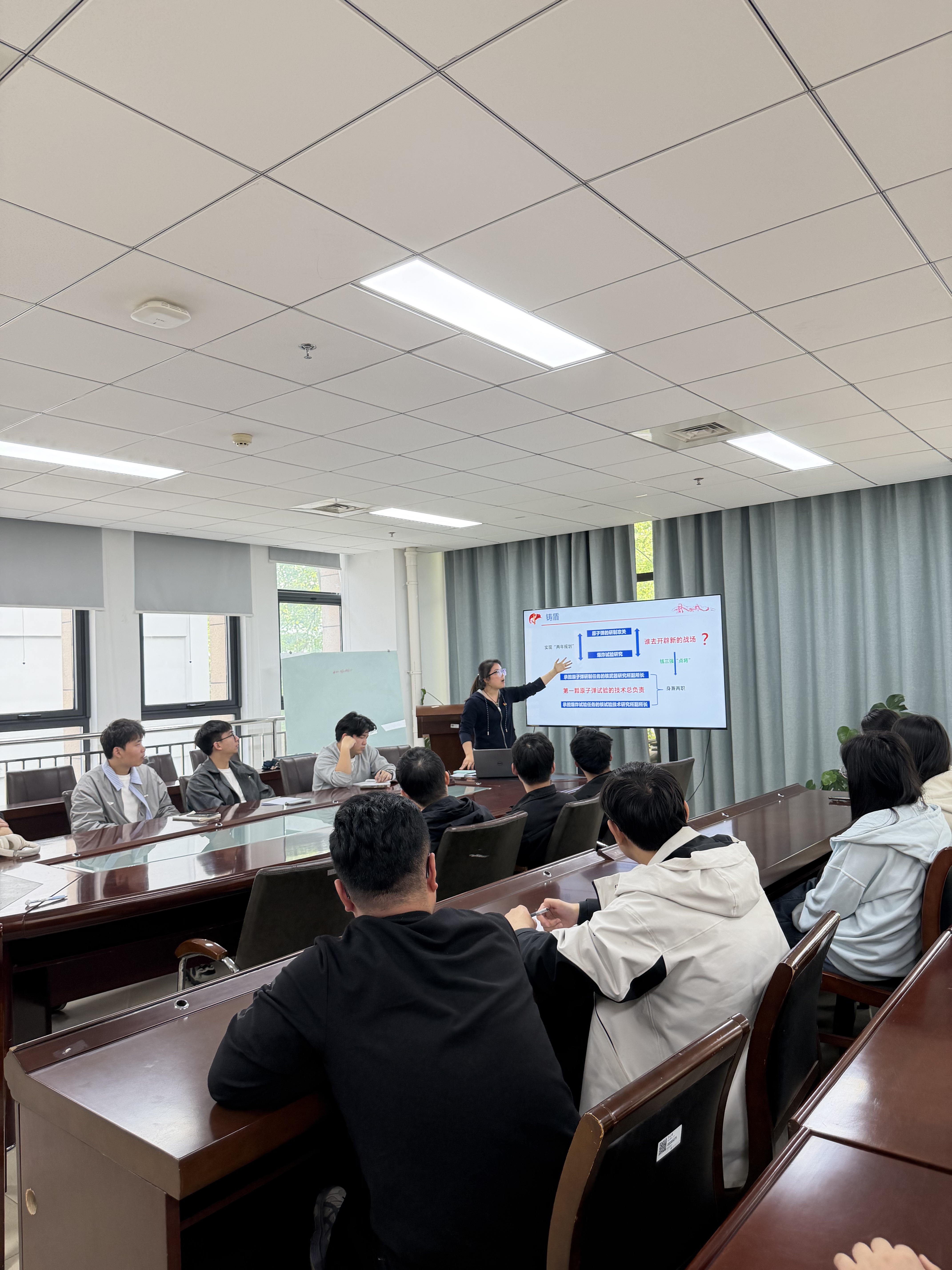 为厚植研究生党员的家国情怀与科技报国信念,推动学习科研与国家战略需求、国防建设深度融合,4月17日下午,物理与光电工程学院研究生党支部组织开展“追‘星’逐光,解锁光电人的报国密码”系列主题学习活动。本期聚焦著名理论物理学家、“两弹一星”功勋奖章获得者程开甲院士,探寻他以核铸盾的报国征程。
